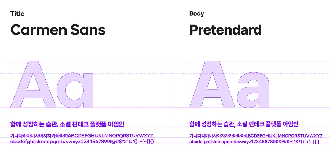 Carmen Sans와 Pretendard 조합의 조합은 간결하면서도 신뢰감 있는 인상을 주어요.